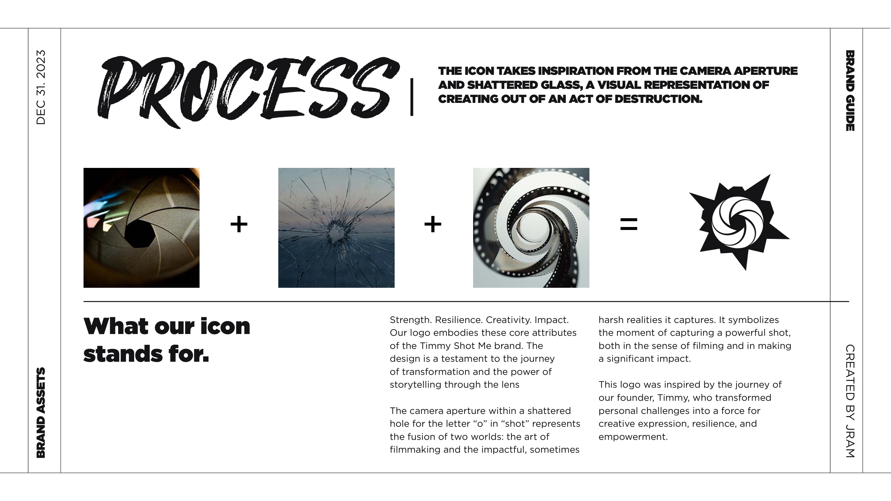 I created an identity system that plays on the double meaning of the word “shot”—referencing both the lens of a camera and the unruly nature of punk and rap culture. The branding balances rebellion with trend-savvy appeal, combining distressed typography, stark compositions, and tactile visuals that feel as at home on a zine as they do in a film title sequence. The logo—a fragmented aperture mark—serves as a recurring icon that can be stamped across physical merch, video transitions, or used as a standalone badge of creative defiance.